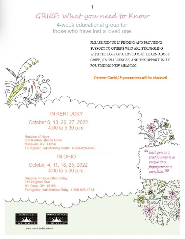 Please join us for a 4-week educational group for those who have lost a loved one! Please give our Bereavement Department a call to RSVP at 800.928.4848. We would love to have you!